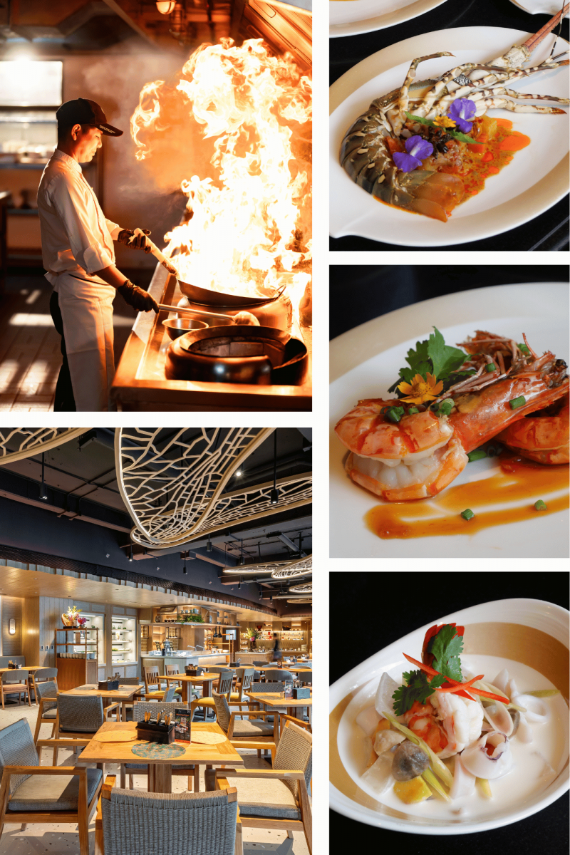 Premium Seafood Upgrade: THB 1,900++ per person (Includes two colossal Phuket shrimp with tamarind, blue lump crab in the Tom Kha Talay, and a Massaman-braised half Phuket lobster tail with the main course)