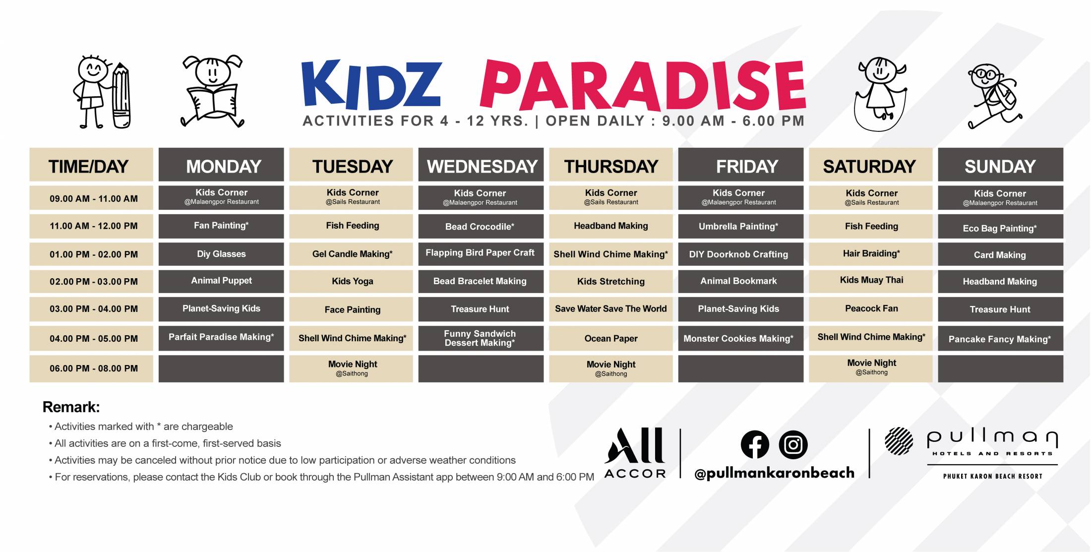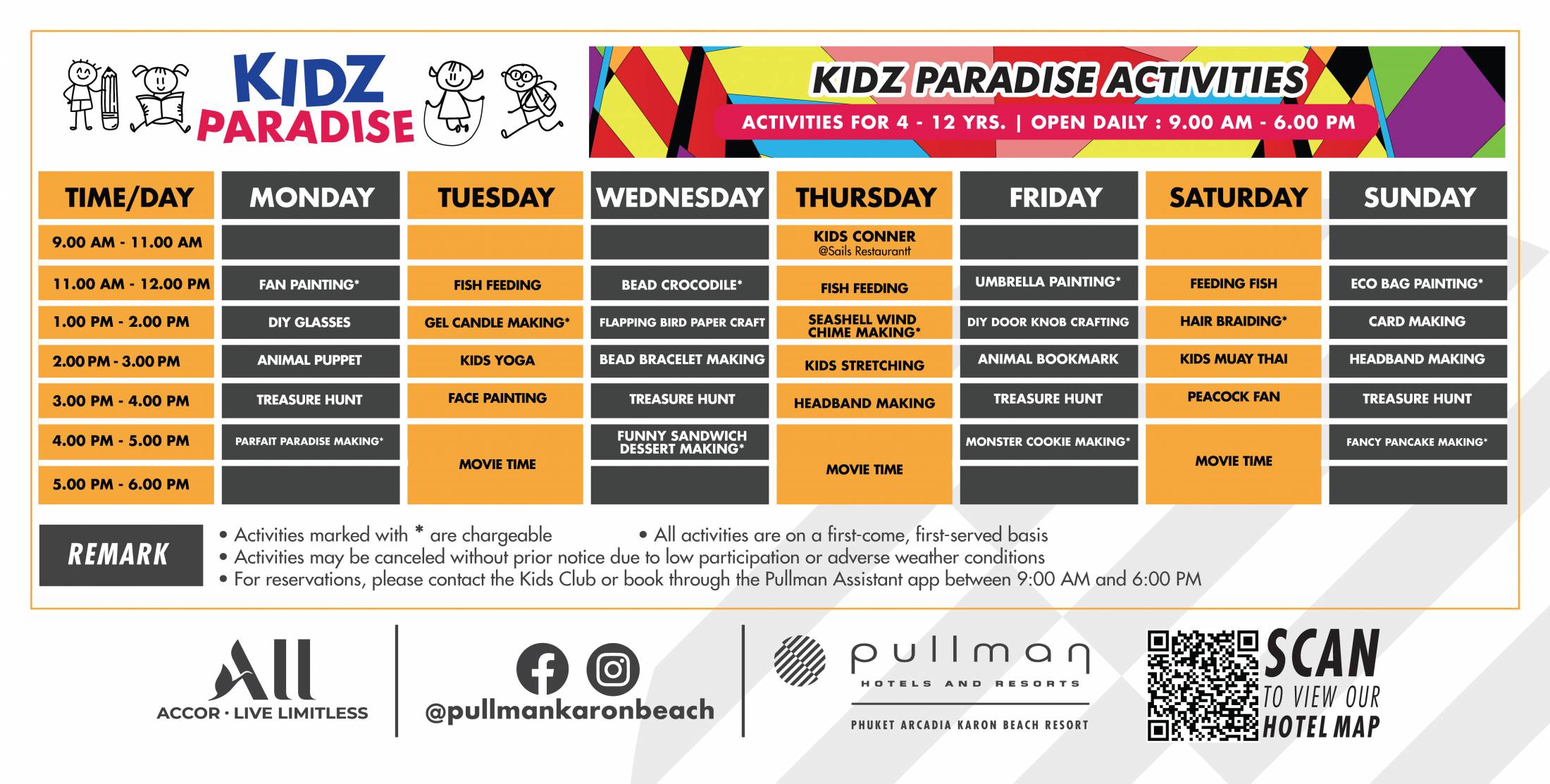 The full schedule of activities of our kids’ clubs in Phuket can also be accessed through the Pullman Assistant App after check-in, making it easy for parents to plan each day around their children’s interests.